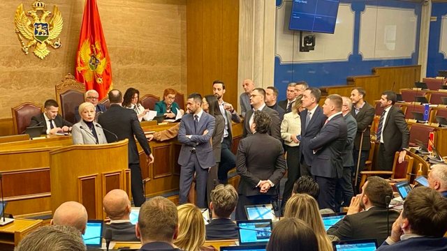 Pasi kryetari i Kuvendit, Andrija Mandiç, hapi seancën, deputetët e opozitës u ngritën nga vendet e tyre dhe dolën para tij.