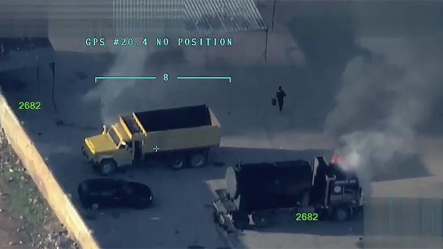 Në këtë kuadër, avionët pa pilotë (IHA) kanë filmuar momentet kur terroristët u kanë vënë zjarr automjeteve dhe ndërtesave në pika të shumta të Afrinit.