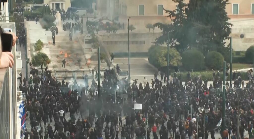 Sheshi Sintagma në Athinë është kthyer në një arenë lufte mes policisë dhe protestuesve në dy vjetorin e tragjedisë në Larisa.