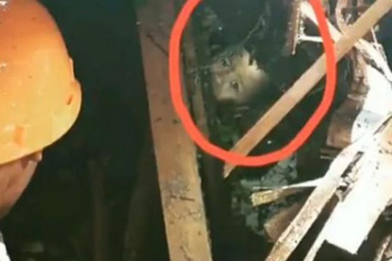 Ata dëgjuan të qarat e fëimijës ndërsa kërkonin nën rrënojat dhe arritën ta nxirrnin atë shëndosh e mirë.