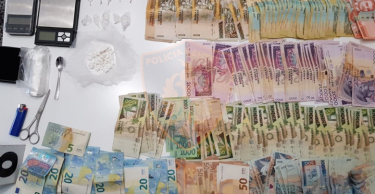 Sekuestrohen dhjetëra doza me kokainë, një shumë e konsiderueshme në euro dhe lekë dhe sende të tjera që shërbenin për peshimin dhe paketimin e lëndës narkotike në doza.