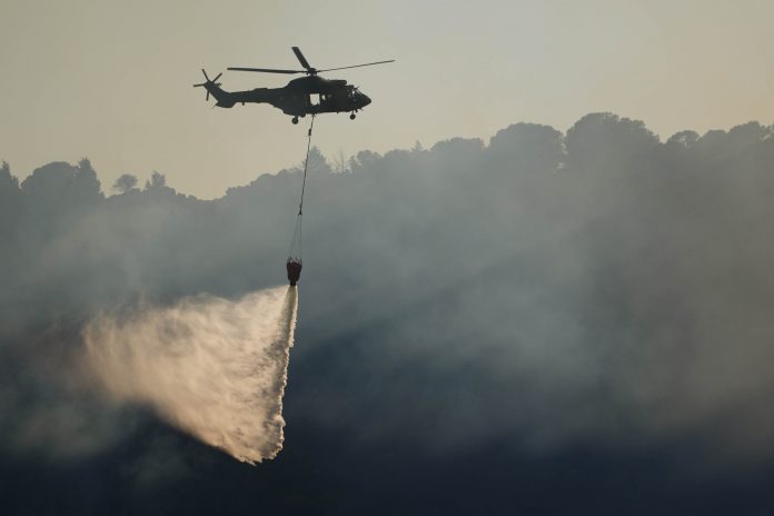 Me rënien e erës pasdite, helikopterët dhe avionët rifilluan punën, duke hedhur ujë intensivisht në zonat ku flakët ishin më të përqendruara.