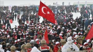 Marshi i gjatë katër kilometra e gjysmë, i titulluar “Turqia marshon për dëshmorët”, shënon 104-vjetorin e betejës së vitit 1914, në të cilën rreth 90.000 ushtarë turq ishin ngrirë për vdekje.