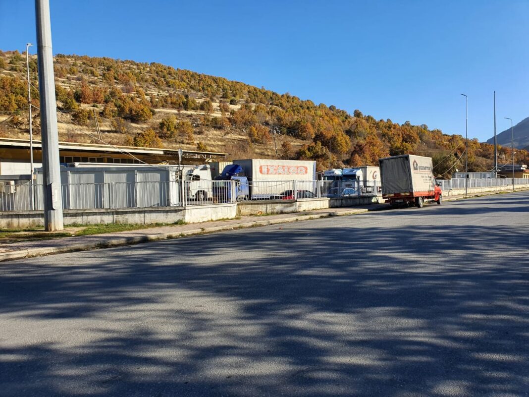 Siç shihet dhe në foto, kamionët me mallra qëndrojnë në radhë.