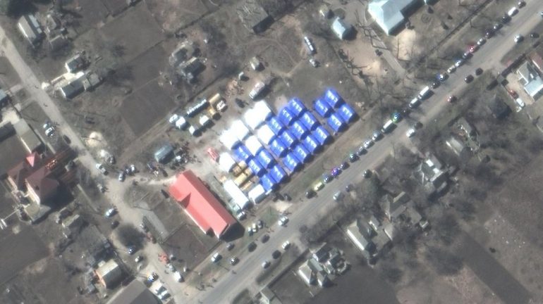 Një kamp filtrimi është në Bezimenne, një fshat ukrainas 20 milje në lindje të qytetit të rrethuar të Mariupolit. Imazhet satelitore të siguruara nga Maxar Technologies dhe të publikuara nga gazeta tregojnë një grup tendash përgjatë autostradës E58 që të çon nga Mariupol në Rusi.