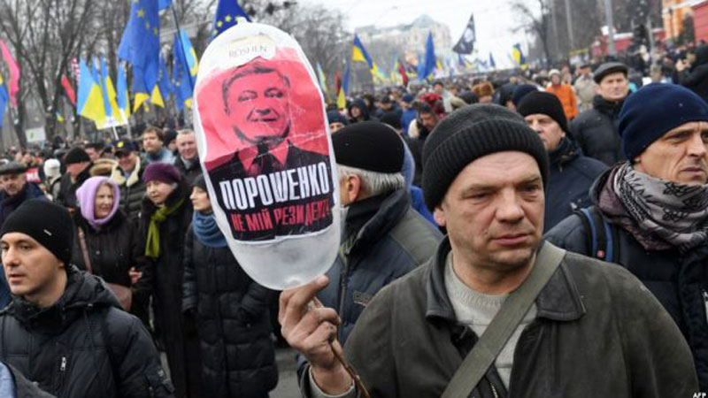 Mijëra protestues janë mbledhur në kryeqytetin e Ukrainës, Kiev, duke kërkuar largimin e presidentit Petro Poroshenko nga detyra.