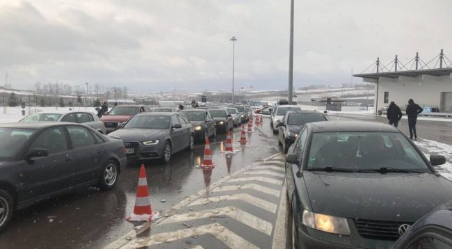 Edhe në fotografit e siguruara nga lajmi.net, shihen kolona të gjata në Merdarë Qendra Kombëtare për Menaxhimin Kufitar ka njoftuar se të gjitha rrugët që shpijnë te pikat kufitare janë të kalueshme.