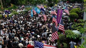 Protestuesit gjithashtu u kërkuan autoriteteve amerikane të miratojnë një ligj që do t’i japë Hong Kongut privilegje të caktuara në bashkëpunimin ekonomik me SHBA.