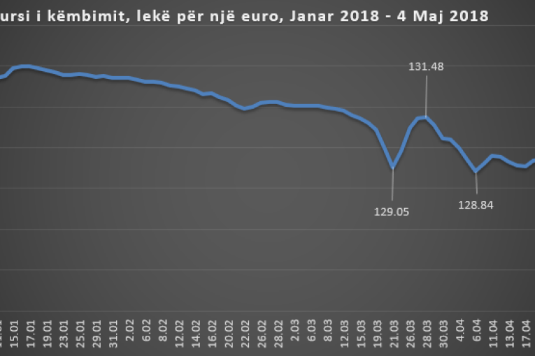 Dy ditët e fundit euro arriti një nivel që nuk ka ndodhur që prej 12 vjetësh. Një euro është blerë me 127.3 lekë, apo rreth 0.42 pikë më pak se një ditë më parë, sipas kursit zyrtar të Bankës së Shqipërisë.