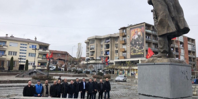 Veseli i shoqëruar nga kreu i PDK-së në Skenderaj, Sami Lushtaku dhe nga kryetati i Skënderajt, Bekim Jashari, kanë vendosur lule tek shtatorja e komandantit legjendar Adem Jashari i cili edhe ishte prijës i kësaj beteje.