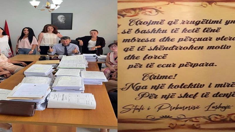 “Urojmë që rrugëtimi ynë së bashku të ketë lënë mbresa dhe përçuar vlera që të shndërrohen motiv dhe forcë për të ecur përpara. Urime! Nga një kolektiv i mirë për një shef të denjë”, kanë shkruar në dhuratë stafi i tij.