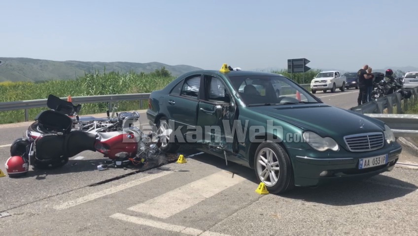 Nga pamjet që ka mundur të sigurojë për “BalkanWeb”, gazetari Elidon Ndreka, duket se përplasja mes një makine dhe motorit ka qënë e fuqishme.