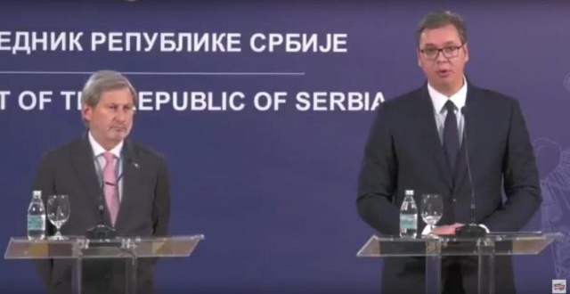 Vuçiq theksoi se tema kryesore që zhvilloi me Hahnin ishte për marrëdhëniet midis Beogradit dhe Prishtinës, situatës në rajon, sundimin e ligjit.
