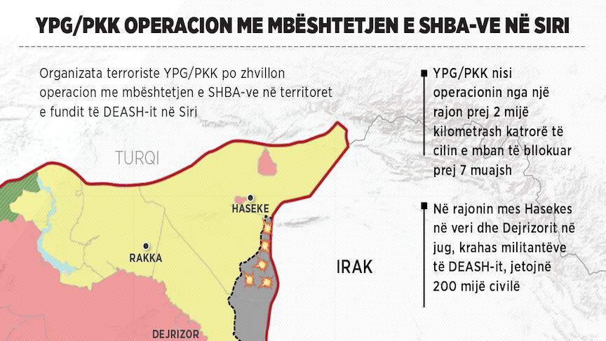 Organizata terroriste YPG/PKK po zhvillon operacion me mbështetjen e SHBA-ve në rajonin e DEASH-it në lindje të Sirisë në kufi me Irakun, të cilin e mban në bllokadë prej 7 muajsh.