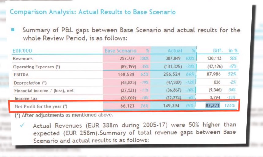 Sipas auditimit, kompania koncesionare Tirana International Airport ka fituar deri më tani 84 milionë euro më shumë nga skenari bazë që është miratuar me kontratën koncesionare në vitin 2004. Kjo i jep automatikisht të drejtë qeverisë që të kërkojë kompesim 100 për qind të këtyre parave.