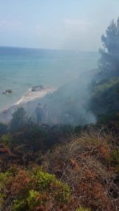 Flakët e zjarrit kanë përfshirë mesditën e sotme ishullin e Sazanit. Vatra e regjistruar pak më parë në ishull rrezikon të përfshijë edhe pyllin e Sazanit.