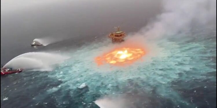 “Zjarri në det u shua në 10:45 pas mëngjesit pas një rrjedhje gazi rreth 500 metra nga një platformë shpimi”, shkruajti në Twitter zyrtarët e Ministrisë së Industrisë  meksikane.