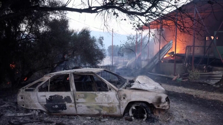 Televizionet greke shfaqen pamjet e një banese e cila ishte shkrumbuar. Forcat e mbrojtjes civile kanë qenë në gatishmëri pasi rreziku i zjarreve mbetet i lartë për të shtunën, tha Vathrakogiannis në një konferencë televizive. Një zjarr pyjor që kërcënoi për një kohë të shkurtër shtëpitë në një qytet bregdetar afër Athinës u vu nen kontroll më herët të premten, tha brigada e zjarrfikësve.