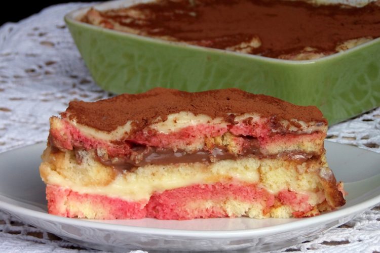 Ato duhet të jenë të paktën 150 ml secila dhe në shtresën e parë vendosni një kubik nga pandispanja duke e lagur me një lugë sherbet, shurup apo lëng frutash.