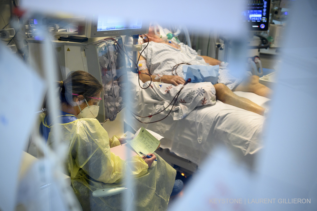 195 pacientë me Covid-19 aktualisht janë në kujdes intensiv. Kjo është 103 për qind më shumë në krahasim me javën e kaluar. Shtretërit e kujdesit intensiv në spitalet zvicerane (përfshirë shtretërit ad-hoc) aktualisht janë plot 74 për qind të zënë. Nga këto, 23 për qind janë të zënë nga të prekurit nga Covid 19.
