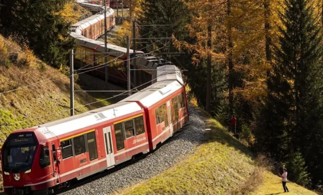 Treni 1.9 km i gjatë i realizuar nga kompania Rhaetian Railëay”, përbëhet nga 100 vagona dhe përfundoi një udhëtim spektakolar 25 km nëpër Alpe.